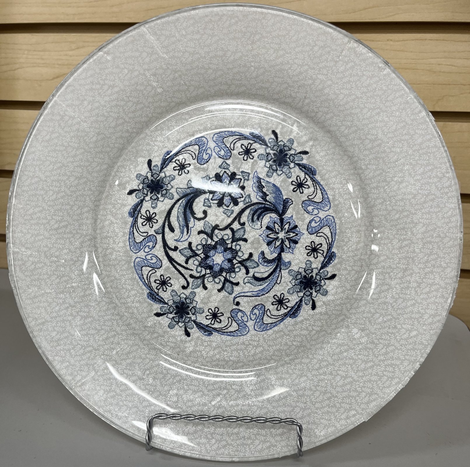 Val is going to show you how to decoupage stitching onto a glass plate!